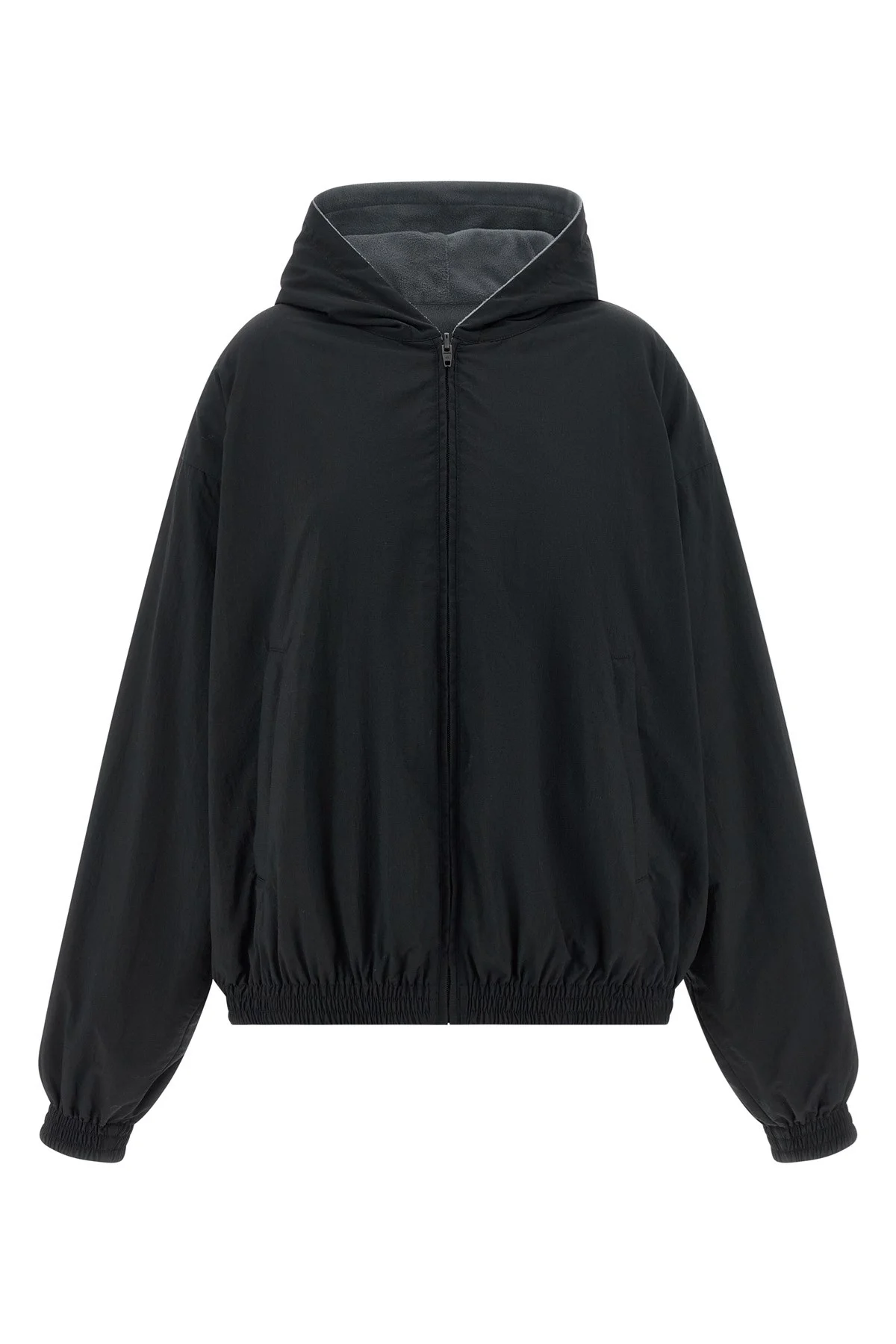 cod. 857733TTO041000 Reversible jacket in nylon tracksuit canvas and dry fleece, 'Cursive' embroidery on the front and back, hood, front zip closure, pockets, long sleeves with elastic cuffs and dropped shoulder, elastic hem. Color: Multicolor Size & Fit: Comfort fit Composition: 100% polyamide Made in: Italy