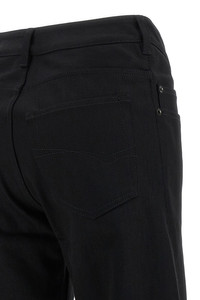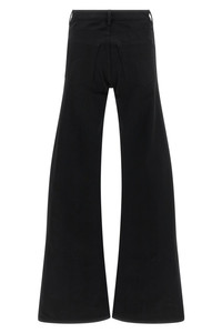 cod. 848019TTWA41000 Cotton denim jeans with curved mid waist with rounded front down, five pockets, wide flared leg, zip and front button closure. Color: Black Size & Fit: true to size fit Composition: 100% cotton Made in: Japan