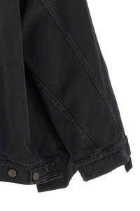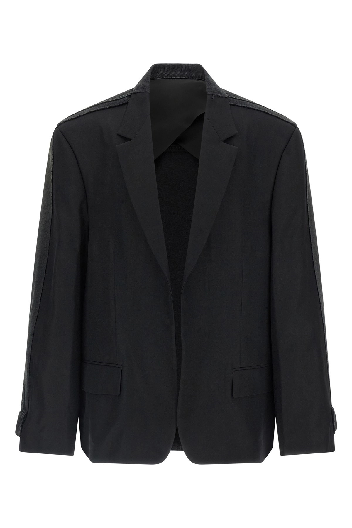 cod. 838842TST081000 Washed cotton denim jacket with blazer front, dressing gown style, flap pockets, wide long sleeves. Color: Black Size & Fit: oversized fit Composition: 100% wool Made in: Italy