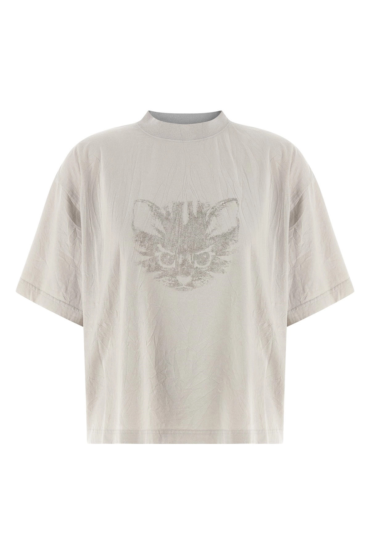 cod. 850989TTVC49081 Crinkled dry jersey cotton T-shirt, crop model, front 'Kittycat' washed effect, crew neck, short sleeves with dropped shoulders. Color: White Size & Fit: oversized fit Composition: 100% cotton Made in: Portugal