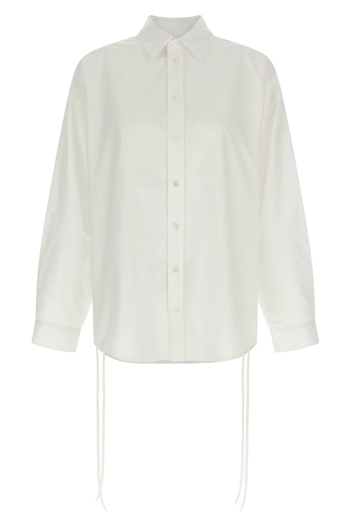 cod. 857835TRM289000 Cotton poplin shirt, 'Lace-Up' construction with open sides and laces to tie as desired, front button closure, long sleeves with cuffs and dropped shoulders. Color: White Size & Fit: oversized fit Composition: 100% cotton Made in: Italy