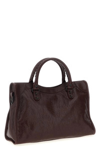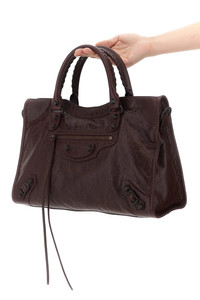 cod. 8230582ABEK6034 Arena Storico 'Le City Bag M' lambskin handbag with double fixed handle, top zip closure, brass finish studs, front zip pocket, adjustable and removable shoulder strap. Color: Bordeaux Size & Fit: W 38.5 x H 24 x D 13.5 cm Composition: 100% lamb leather (Ovis aries) Made in: Italy