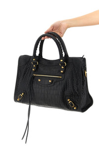 cod. 8230582AB091000 'Le City Bag M' leather handbag with crocodile processing, double fixed handle, top zip closure, brass-finish studs, front zip pocket, adjustable and removable shoulder strap. Color: Black Size & Fit: W 38.5 x H 24 x D 13.5 cm Composition: 100% calfskin leather (Bos Taurus) Made in: Italy
