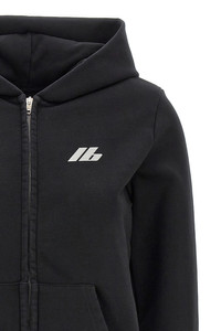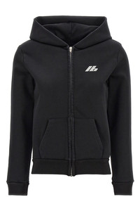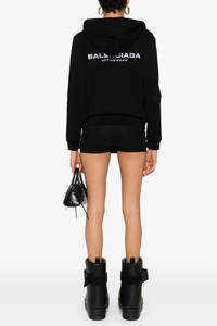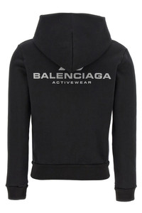 cod. 788243TQVV11000 Stretch cotton hoodie with logo print on the front and back, zip closure, pockets, long cuffed sleeves. Color: Black Size & Fit: Slim fit Composition: 92% cotton, 8% elastane Made in: Portugal