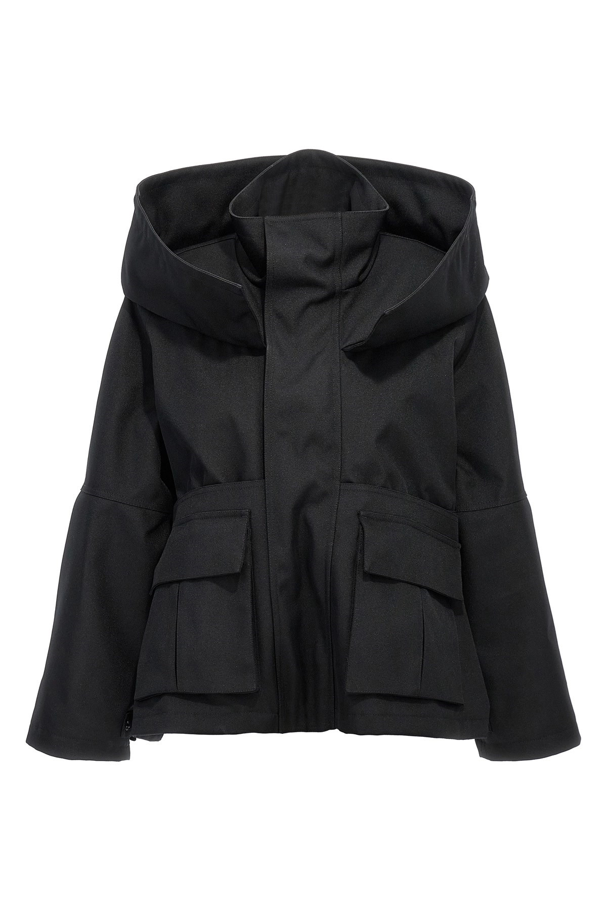 cod. 808924TKQ031000 Oversized canvas jacket, quilted lining, zip and button closure, adjustable drawstring at the waist, long sleeves, raised neck. Color: Black Size & Fit: oversized fit French size Composition: 100% polyester Made in: Italy
