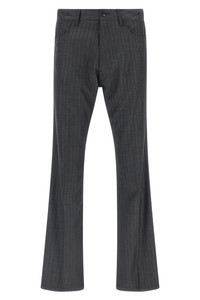 cod. 850705TPT051360 Cool pinstripe patterned wool trousers, straight leg, stretched pleat, zip and front button closure, pockets. Color: Gray Size & Fit: true to size fit Composition: 100% virgin wool Made in: Italy