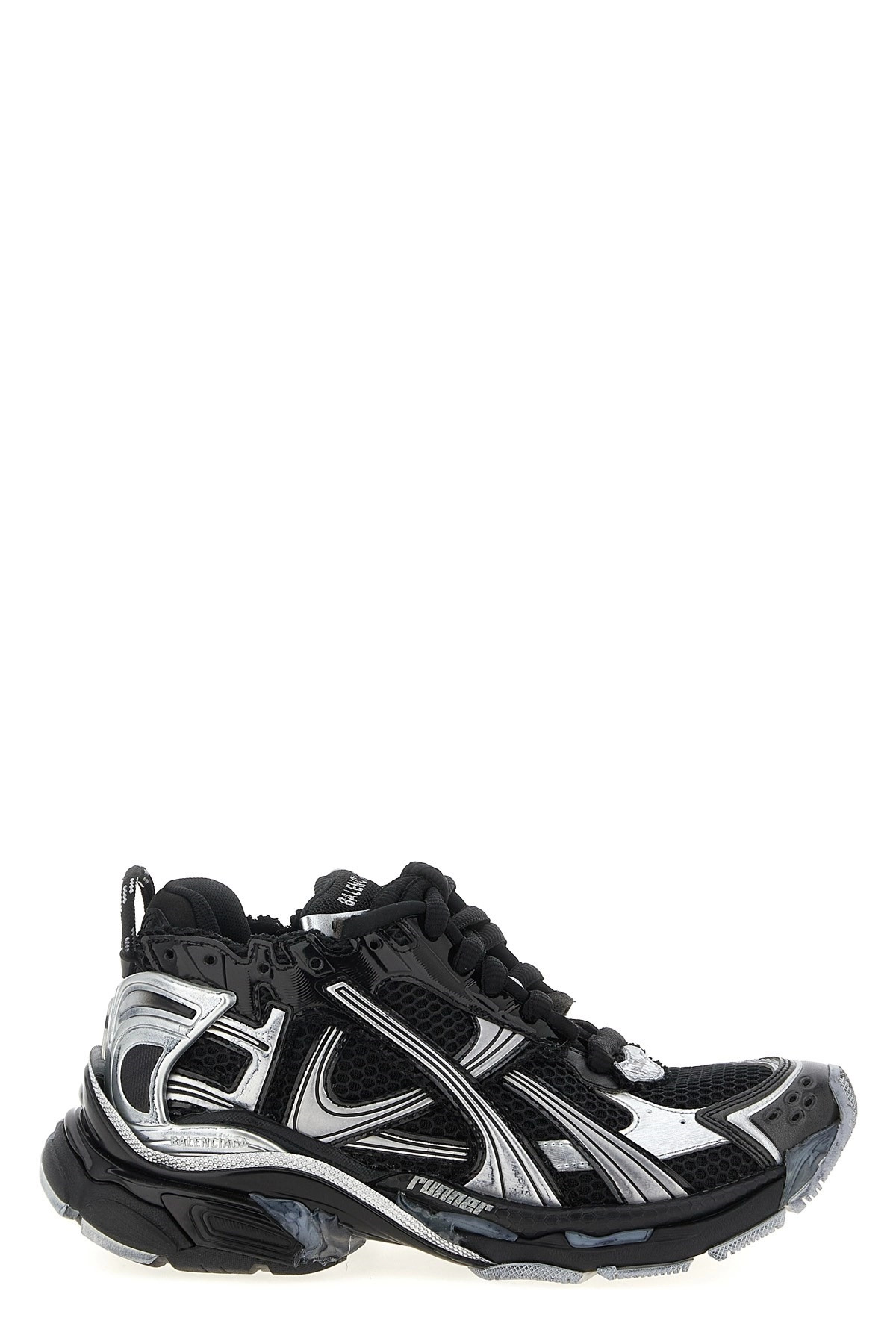 cod. 772767W3RMU1100 'Runner' mesh, polyurethane and used-effect polyester sneakers, printed size on the toe, embossed size on the back, laces closure, rubber sole. Color: Black Size & Fit: EU WOMEN Composition: 57% polyurethane, 43% polyester Made in: China