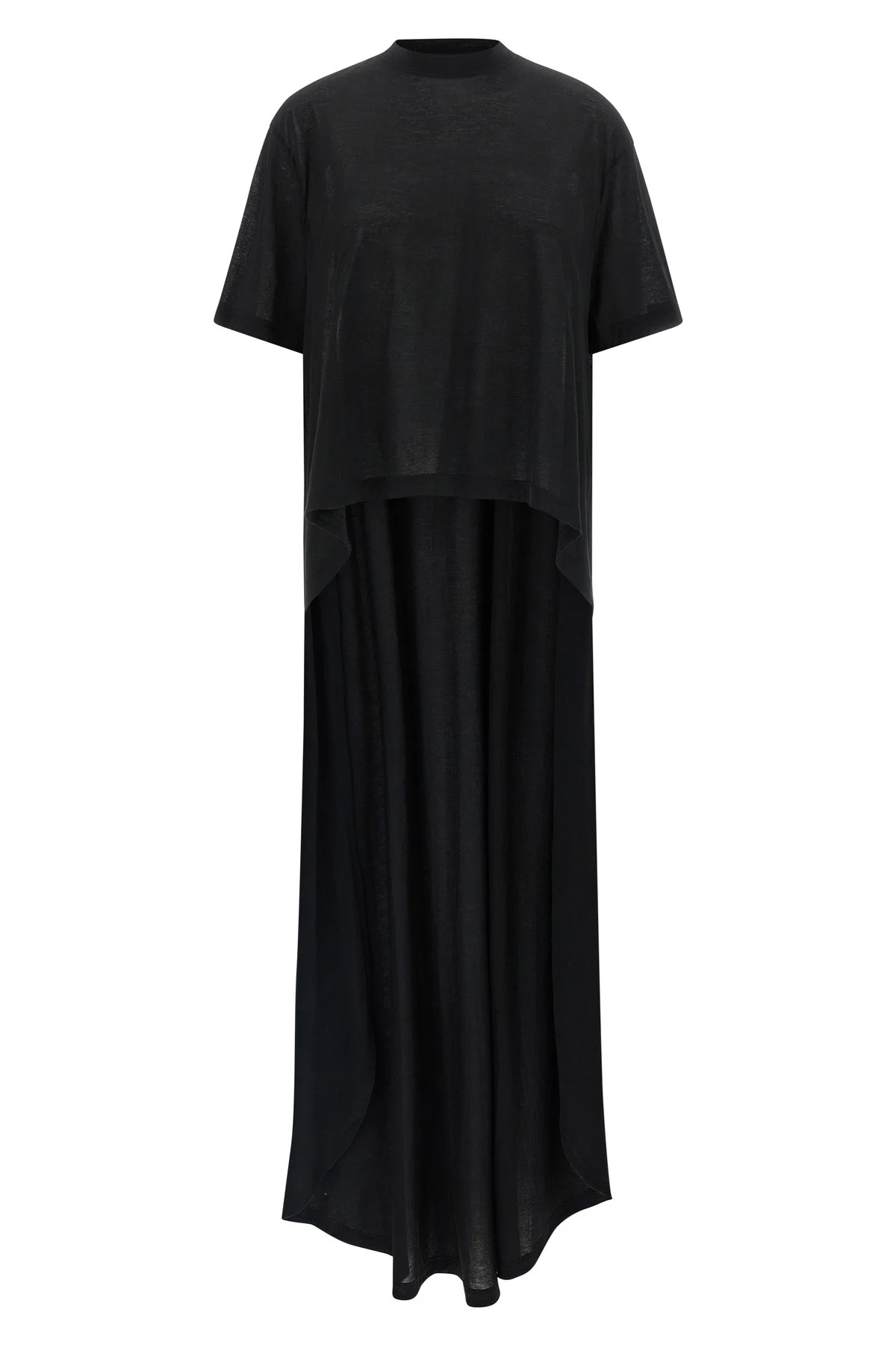 cod. 871740TUVC91000 'Short Train' jersey t-shirt of light cotton blend, crew neck, dropped shoulder, short sleeves, asymmetric length. Color: Black Size & Fit: Oversized fit Composition: 70% cotton 30% polyamide Made in: Portugal