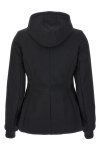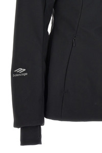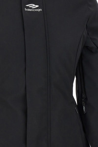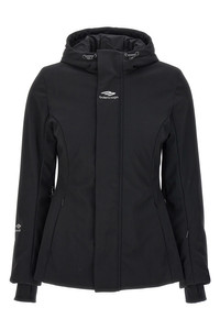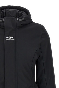 cod. 773998TPQ371000 'Ski Hourglass 3B Sports Icon' doubled stretch nylon parka, 40 gsm light padded technical lining, zip and button closure, hood, pockets, seams sealed with Waterproof tape, waterproof zip mesh slits under the armholes, long sleeves with windproof cuffs with thumb holes and stretch finish, removable stretch snow gaiter. Color: Black Size & Fit: true to size fit French size Composition: 51% nylon 35% polyester 14% elastane