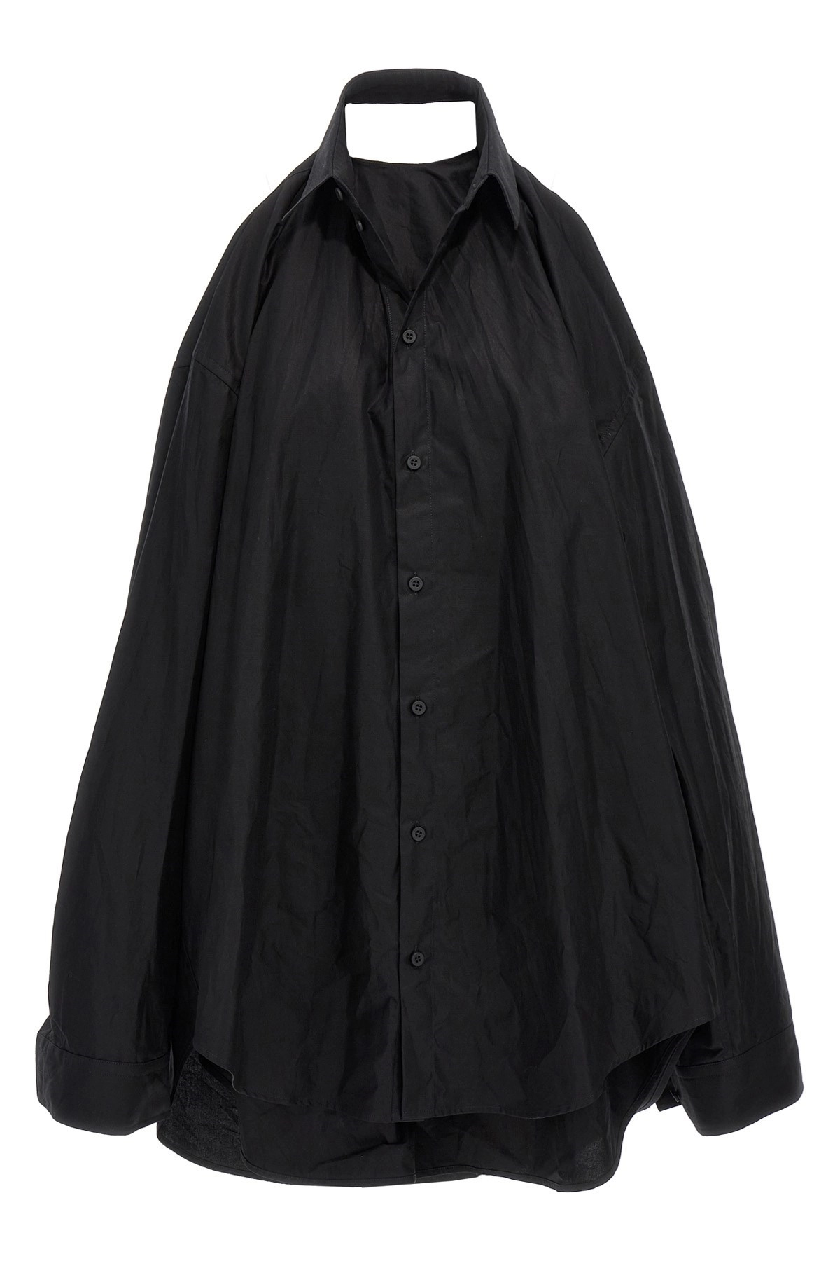 cod. 809049TNM601000 'Suspended' dress in cotton poplin, trompe l'oeil shirt-effect construction, front buttons and collar, bare back. It can also be worn with long sleeves. Color: Black Size & Fit: true to size fit French size Composition: 100% cotton Made in: Italy