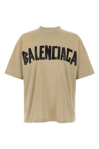 cod. 764235TSVK19501 Dry jersey cotton T-shirt with used effect, 'Tape Type' pattern on the front and back, crew neck, short sleeves with dropped shoulders. Color: Beige Size & Fit: medium fit Composition: 100% cotton Made in: Portugal