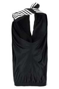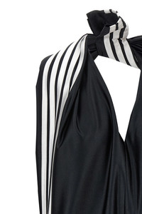 cod. 838791TLV291000 Sleeveless 'Tracksuit' mini dress in technical fabric with contrast details, off-the-shoulder model inspired by joggers, wide front V-neck, knot at the neck, back V-neck, elastic on the hem. Color: White/Black Size & Fit: true to size fit - FRENCH size Composition: 100% polyester Made in: Italy