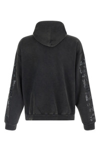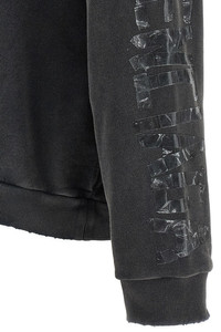 cod. 744441TTVE69374 Washed and used dry fleece hoodie with logo embroidery and ripped front pocket, long cuffed sleeves, dropped shoulders and 'Transparent Tape' pattern. Color: Black Size & Fit: true to size fit Composition: 100% cotton Made in: Portugal