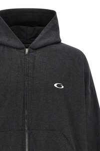 cod. 838688TSWB31140 'Trompe L'Œil' used-effect melange cotton denim hoodie with stretch ribbed knit inserts, 'Loop Sports Icon' embroidery and front zip closure, pockets, long cuffed sleeves and dropped shoulders. Color: Gray Size & Fit: Large fit Composition: 100% cotton Made in: Japan