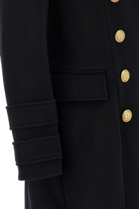 cod. FF1UB065WB500PA '10 Bottoni' double-breasted wool and cashmere coat with front metal 'Leone Catena' button closure, mirror lapels, flap pockets, structured shoulder straps, long sleeves, back vent, serge lining. Color: Black Size & Fit: true to size fit - FRENCH size Composition: 90% virgin wool 10% cachemire Made in: Bulgaria