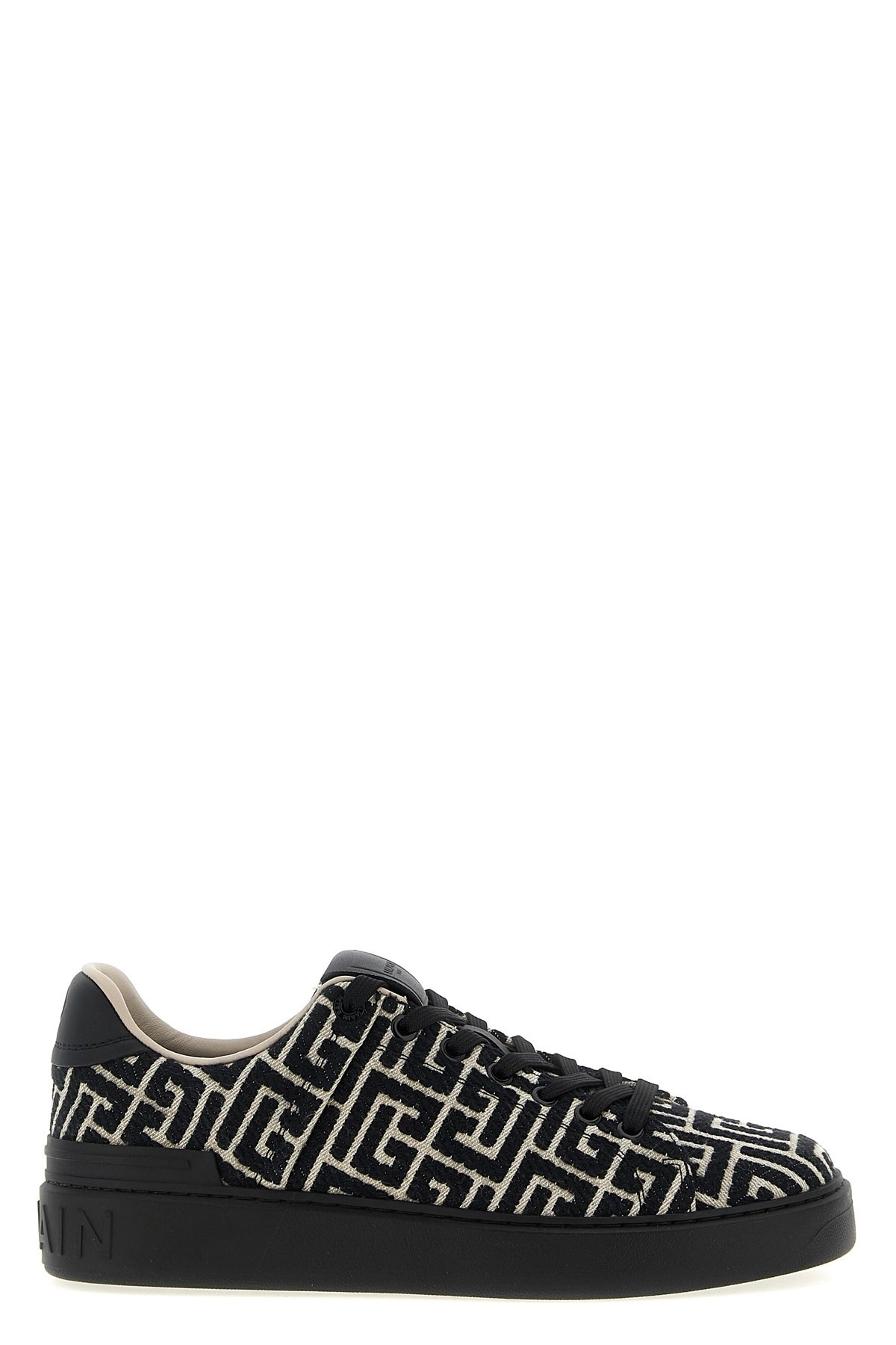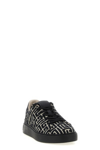 cod. FM1VI288TJCMEDK Jacquard canvas B-Court sneakers with PB labyrinth monogram and calf leather details, lace-up closure, thick rubber sole with embossed logo. Color: Black Size & Fit: EU MEN Composition: 84% cotton, 16% polyester Made in: Italy
