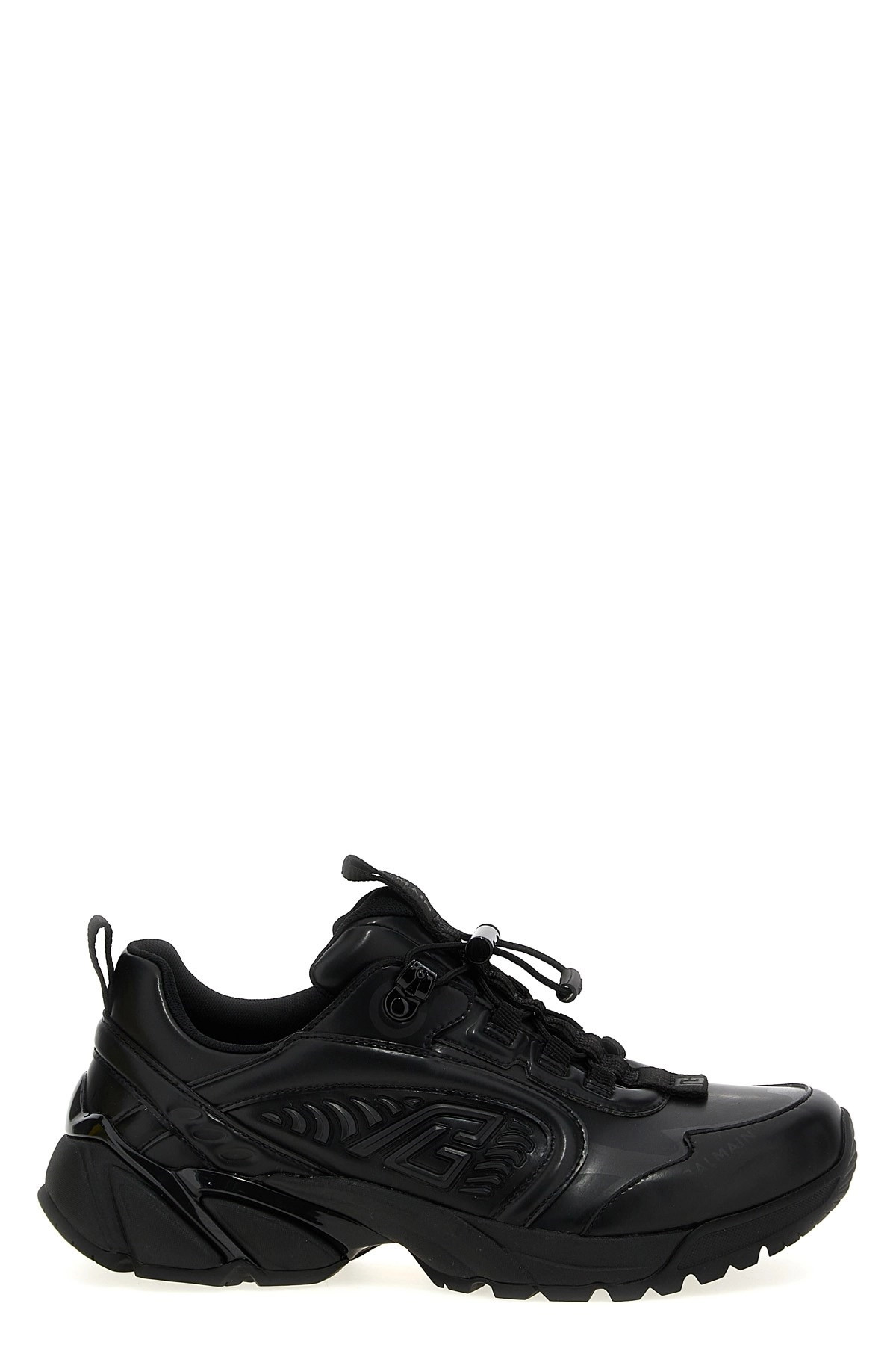 cod. EM1VI357LGSZ0PA 'Cosmic Dust' eco-leather sneakers with side logo detail, adjustable lace closure. Color: Black Size & Fit: EU MEN Composition: 50% nylon 50% polyurethane Made in: China