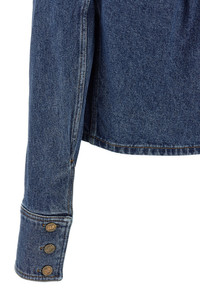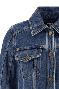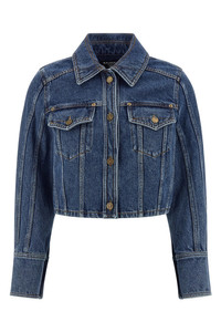cod. GF1TC215DG086EX Cropped denim jacket in cotton with collar, front pockets with buttons, button closure, and long sleeves with cuffs. Color: Blue Size & Fit: True to size fit French sizing Composition: 100% cotton Made in: Italy