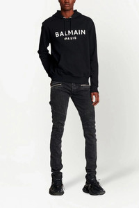 cod. DH1JR002BB65EAB Cotton hoodie with front logo print, kangaroo pocket, long cuffed sleeves. SUSTAINABLE: This product is made of organic cotton. Color: White/Black Size & Fit: true to size fit Composition: 100% cotton Made in: Portugal