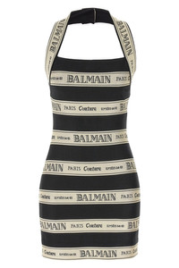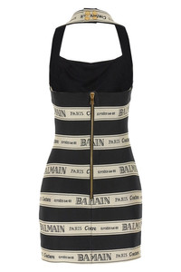 cod. EF1R5088JJ95EDY Jacquard viscose blend mini dress with 'Nastro Balmain' pattern, square neckline, bare back with snap button closure at the neck, back zip closure. Color: Multicolor Size & Fit: true to size fit French size Composition: 97% vi, 2% pa, 1% ea Made in: Portugal