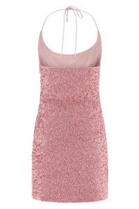 cod. FF1R2470PC96OAA Silk mini dress covered with all-over sequins, American-style neckline with adjustable lace at the back of the neck, side zip closure, lining. Color: Pink Size & Fit: true to size fit - FRENCH size Composition: 100% silk Made in: India