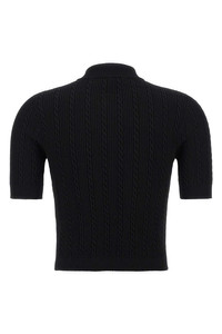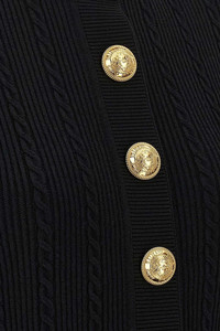 cod. FF1KL230KI500PA Ribbed knit and twisted cardigan, crop model, crew neck, front snap button closure with decorative metal buttons applique, short sleeves. Color: Black Size & Fit: true to size fit - FRENCH size Composition: 83% viscose, 17% polyester Made in: France