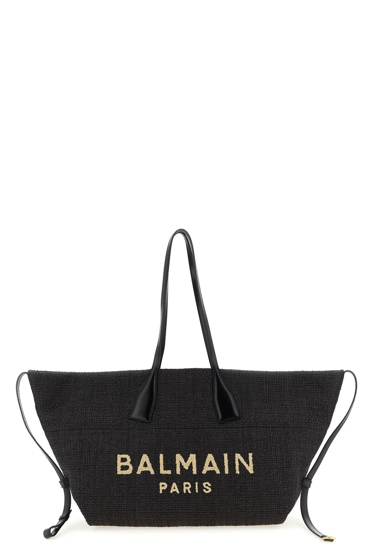 cod. GN1FI015TRAA0PA 'Track' calf and raffia leather shopping bag with front woven logo, double fixed handle, magnetic closure, serge lining, adjustable and removable shoulder strap. Handcrafted product, any imperfections are to be considered characteristics of uniqueness. Color: Black Size & Fit: W 36 (bag base) x H 30 x D 16 cm Composition: 100% polyamide