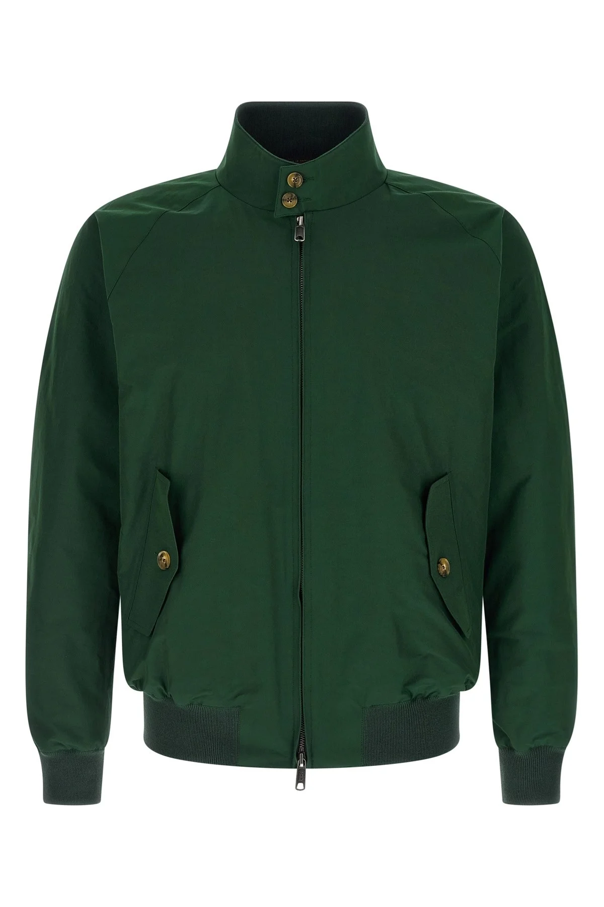 cod. BRCPS0001BCNY16368 Harrington - G9' cotton blend Baracuta Cloth jacket with WR anti-drop treatment, breathable Coolmax® fabric lining with iconic Fraser Tartan pattern, two-button standing collar, umbrella shoulder strap, front zip closure, long raglan sleeves with cuffs, pockets, and headband. Color: Green Size & Fit: slim fit - UK size Composition: 58% polyester, 42% cotton Made in: United Kingdom