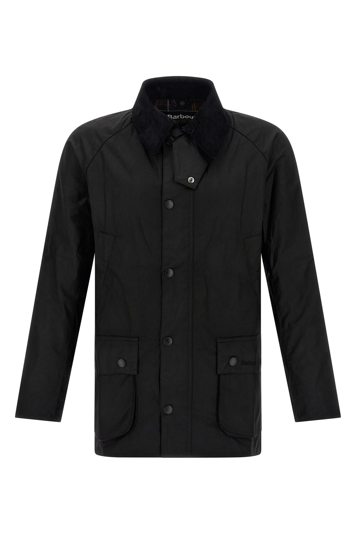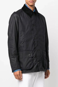 cod. MWX0339MWXBK72 Iconic waxed cotton 'Ashby' jacket with corduroy collar, double zip and clip button closure, pockets, long sleeves, logo embroidery. Color: Black Size & Fit: True to size fit Composition: 100% cotton Made in: Moldova