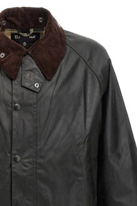 cod. MWX0018MWXSG91 'Bedale' waxed cotton jacket with corduroy collar, double zip and button closure, pockets, long sleeves, side slits with buttons. Color: Green Size & Fit: true to size fit Composition: 100% polyamide Made in: Burma
