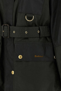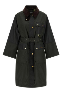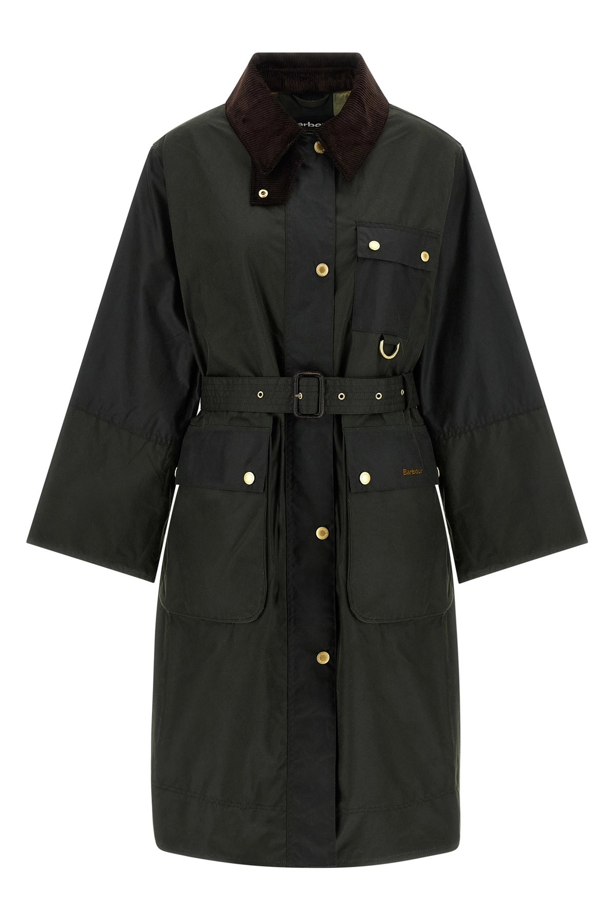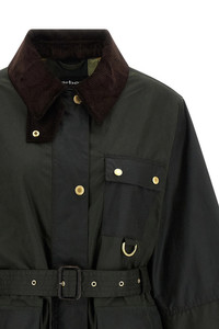 cod. LWX1486LWXOL52 'Milda' waxed cotton jacket with corduroy collar, logo embroidery and metal D-Ring on the front, zip and snap button closure, pockets, long sleeves with foldable cuffs, opening back split, check cotton lining, removable belt. Color: Green Size & Fit: true to size fit - UK sizing Composition: 100% cotton Made in: Moldova
