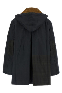 cod. LWX1527LWXNY71 Barbour X GANNI waxed cotton parka with corduroy maxi collar, removable hood, front pockets with check print, front zip closure, front logo patch, long sleeves with check patch. Color: Blue Size & Fit: True to size fit UK SIZE Composition: 100% waxed cotton Made in: Moldova PROMO CODE NOT APPLICABLE
