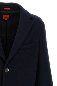 cod. CSU52300458170 'Baron' wool jersey coat with V-neck with peak lapels, single-breasted button closure, long sleeves. Color: Black Size & Fit: True to size fit Composition: 98% virgin wool 2% polyamide Made in: Italy