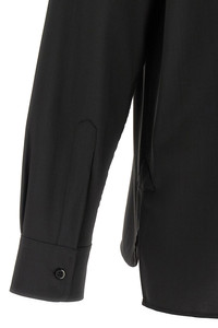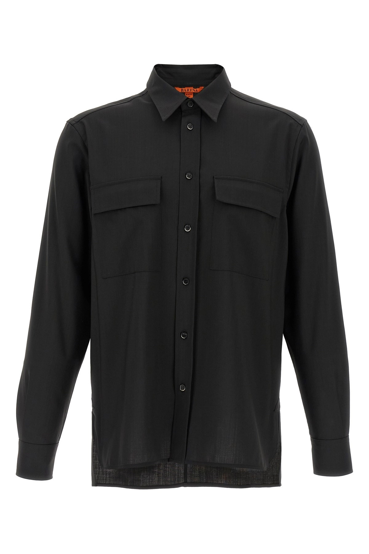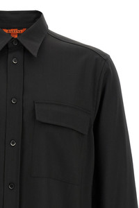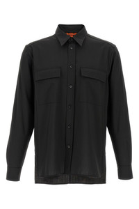 cod. CAU52670478580 Tropical wool 'Den' shirt with front button closure, pockets, long cuffed sleeves, asymmetric hem, side slits. Color: Gray Size & Fit: true to size fit Composition: 100% virgin wool Made in: Italy