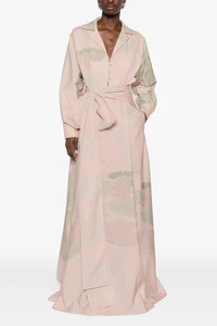 cod. PS26RTWDRESSBEAG23 Long 'Beatrice' dress with cotton chemisier style top, front button closure, long cuffed sleeves, side zip closure, wide and airy taffeta skirt with front split, pockets, removable belt. Color: Pink Size & Fit: true to size fit - FRENCH size Composition: 97% cotton, 3% elastane Made in: Romania