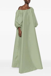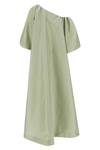 cod. PS26RTWDRESSNAT033 Long 'Nathalie' dress in taffeta fabric, one-shoulder model, long wide balloon sleeves, pockets. Color: Green Size & Fit: true to size fit - FRENCH size Composition: 78% polyester 20% polyamide 2% elastane Made in: Romania