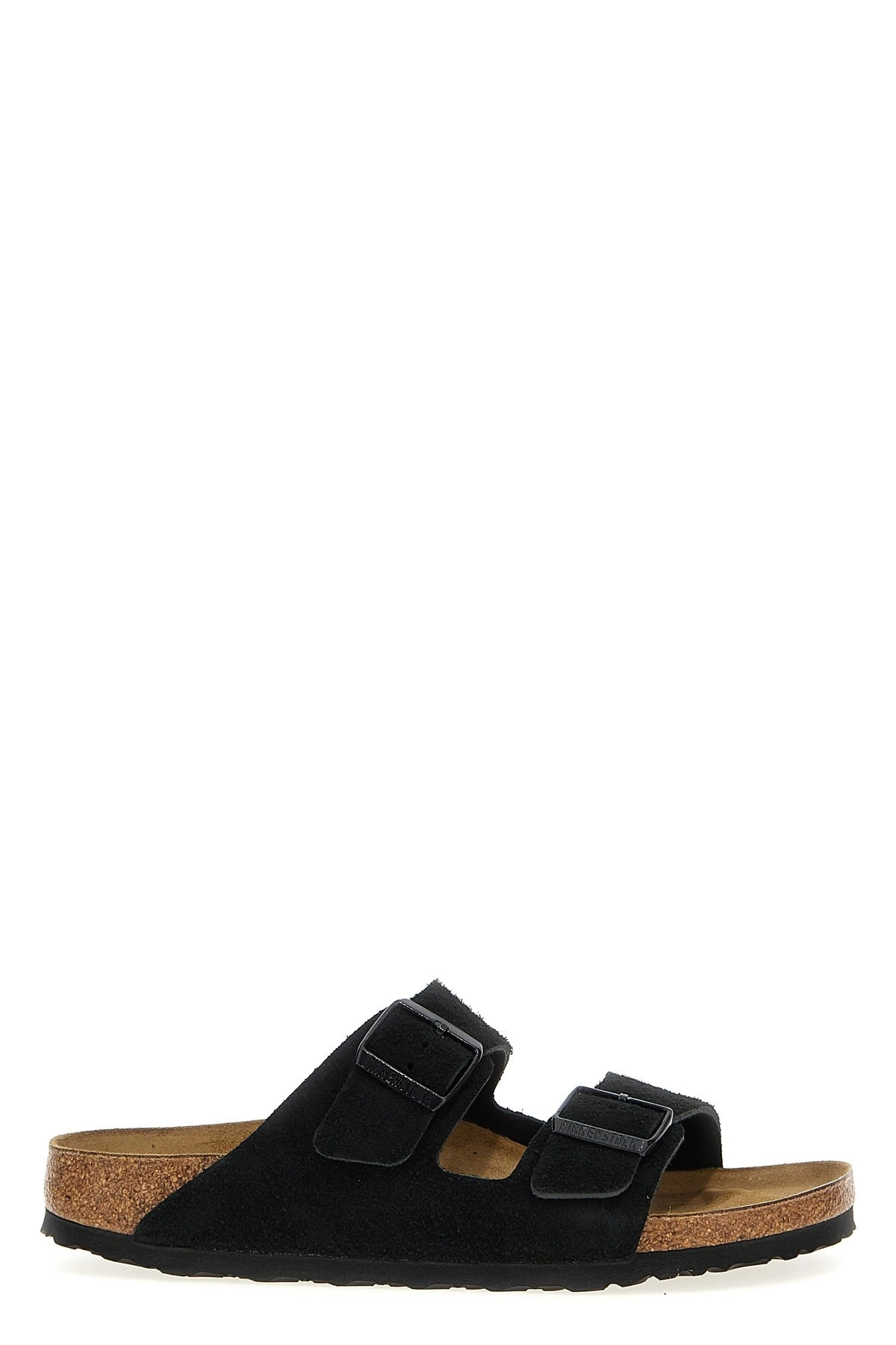cod. 1027164BLACK 'Arizona BS' suede sandals with adjustable bands with strap, cork insole, rubber sole. Color: Black Size & Fit: EU UNISEX Narrow fit Composition: 100% calfskin leather (Bos Taurus) Made in: Germany