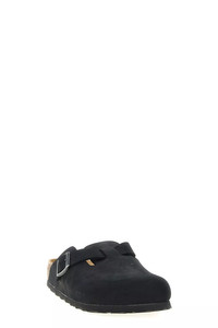 cod. 059463BLACK 'Boston' suede sabots, adjustable strap, cork insole, rubber sole. Color: Black Size & Fit: EU UNISEX - narrow fit Composition: 100% calfskin leather Made in: Germany