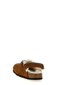 cod. 1028382MINK 'Tokio' suede mules with lamb fur lining, straps with adjustable metal pin closures, cork fussbett, EVA sole. Color: Brown Size & Fit: EU UNISEX Narrow fit Composition: 100% leather Made in: Germany