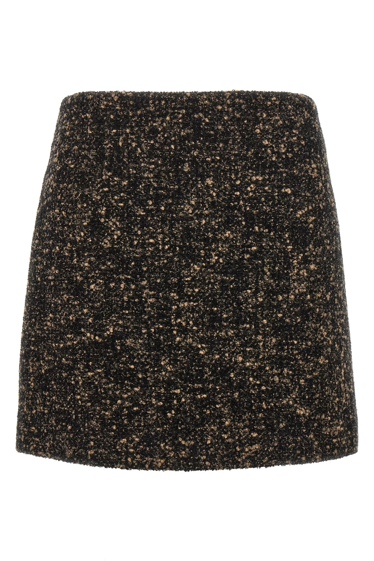 cod. SKCSK02KATMN05 'Katara Coci Mini' boucle wool skirt, high waist, zip closure and solid velvet 'Smiley' pocket at the back, monogram viscose lining. Color: Brown Size & Fit: Slim fit Composition: 44% wo, 38% wp, 18% pl Made in: Italy
