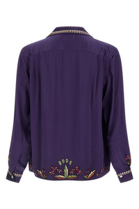 cod. MRF25SH048ULTRAMARINE 'Dream Souvenir' structured silk shirt with embroidered floral motifs, bowling pattern, front button closure, long cuffed sleeves. Color: Blue Size & Fit: true to size fit Composition: 100% silk Made in: India