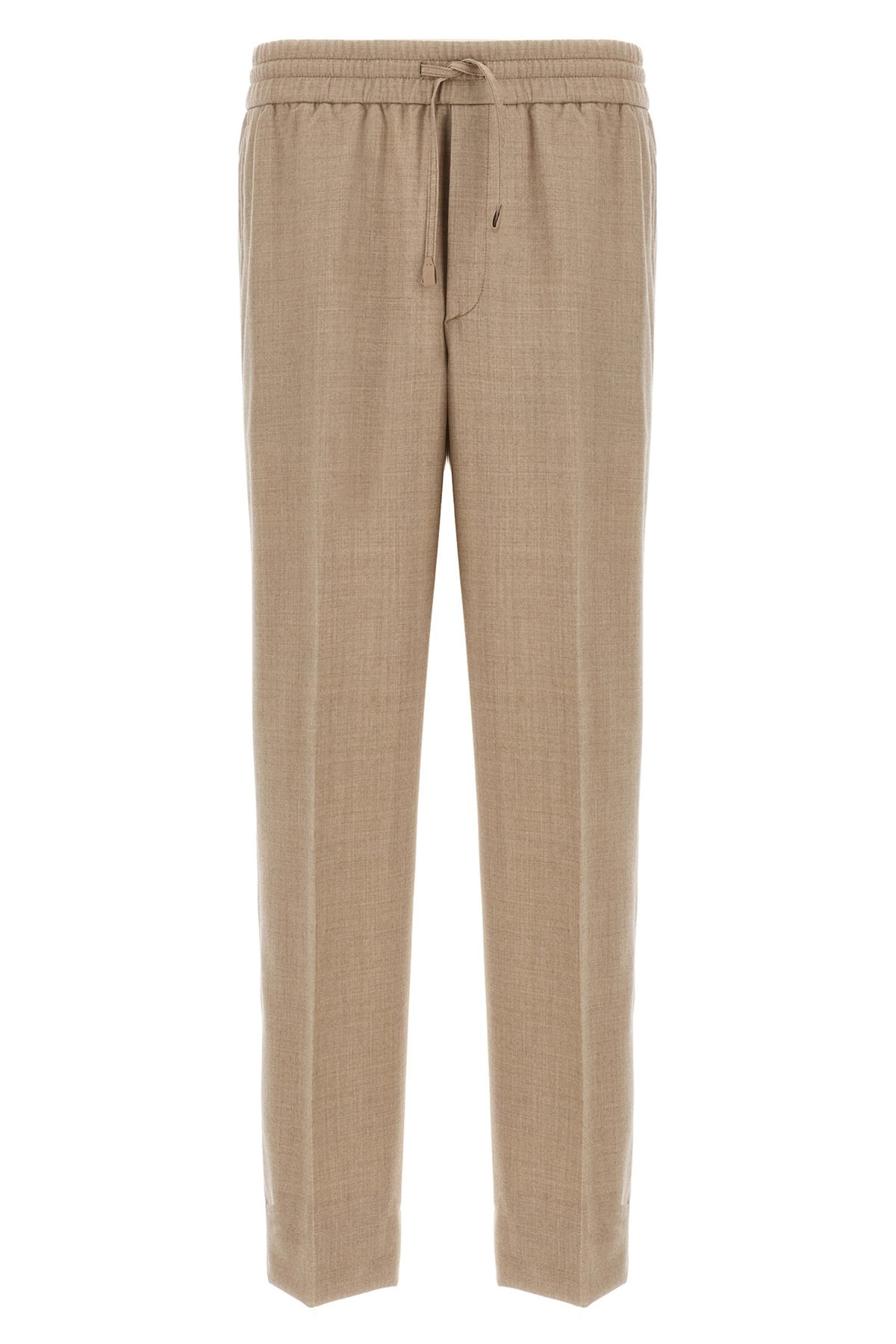 cod. RP2Z0LOZA0J9500 'Asolo' melange wool pants, adjustable drawstring elastic waistband, pockets, straight leg, stretched pleat. Color: Beige Size & Fit: true to size fit Composition: 100% wool Made in: Italy