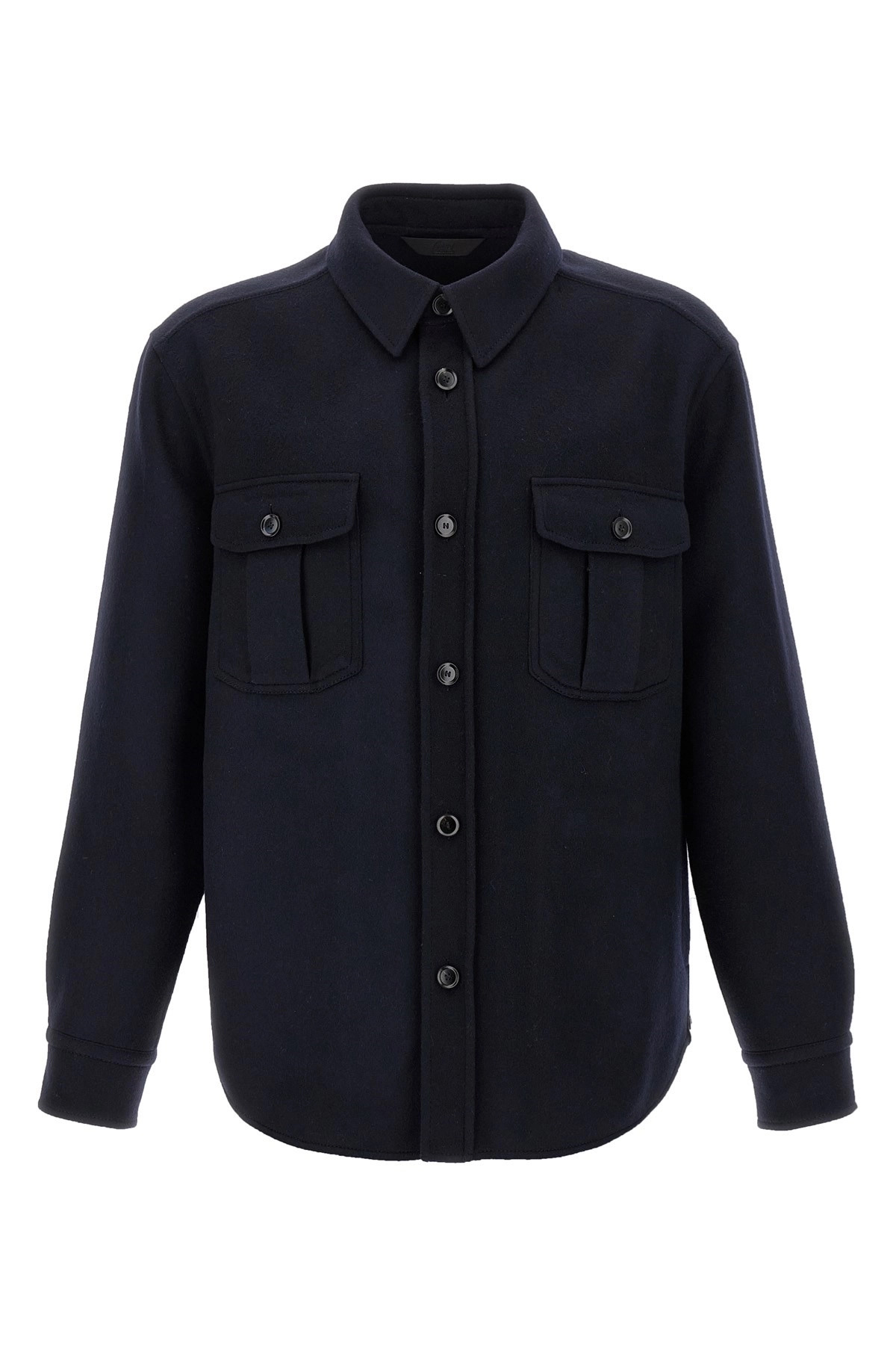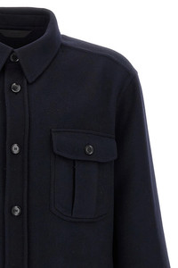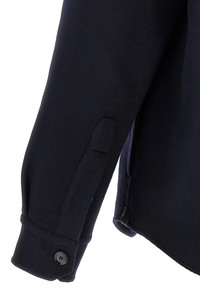 cod. SLVL0LOAA404000 'Vagabond' overshirt in heavy wool and cashmere cloth, front button closure, pockets, long cuffed sleeves, unlined. Color: Blue Size & Fit: true to size fit Composition: 70% wool 30% cachemire Made in: Italy