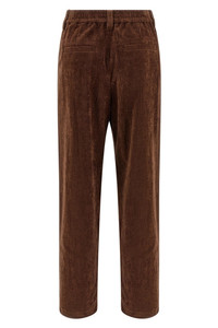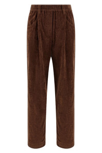 cod. MD574P8773C4413 'Baggy' cotton corduroy trousers with ribbed comfort, elastic waistband, trompe l'oeil flap, pins, straight leg, pockets. Color: Brown Size & Fit: true to size fit Composition: 99% cotton, 1% elastane Made in: Italy