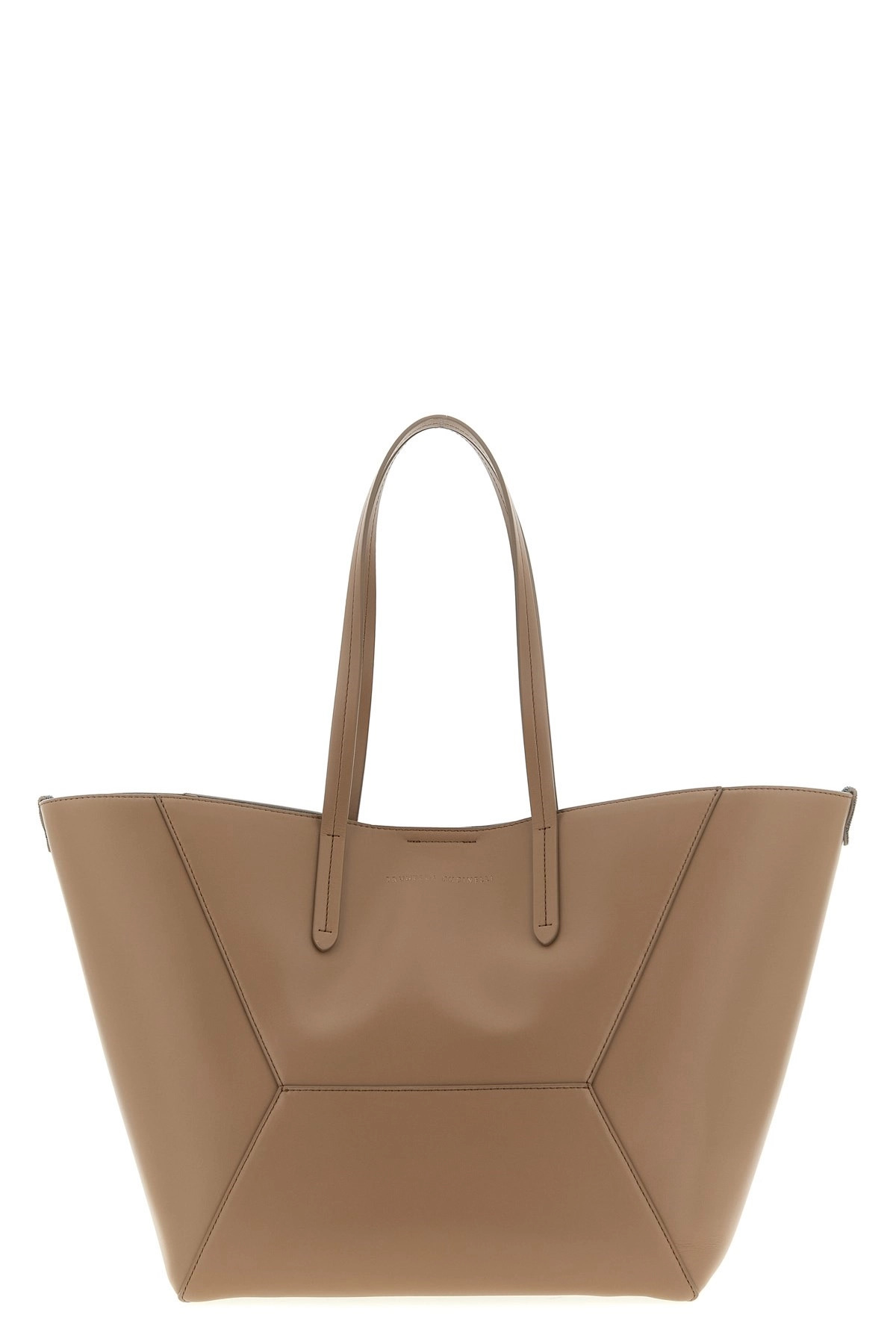 cod. MBTKD2571C4275 Large 'BC Duo' shoulder bag in calf leather, panel construction, double fixed handle, front embossed logo, magnetic closure, side Monile details, removable clutch bag. Color: Beige Size & Fit: W 30 (bag base) x H 30 x D 21 cm Composition: 100% calfskin leather (Bos Taurus) Made in: Italy