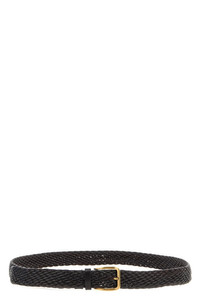 cod. MAUFB344C6074 Braided leather belt, metal buckle. Color: Brown Size & Fit: H 3.5 cm Composition: 100% leather Made in: Italy