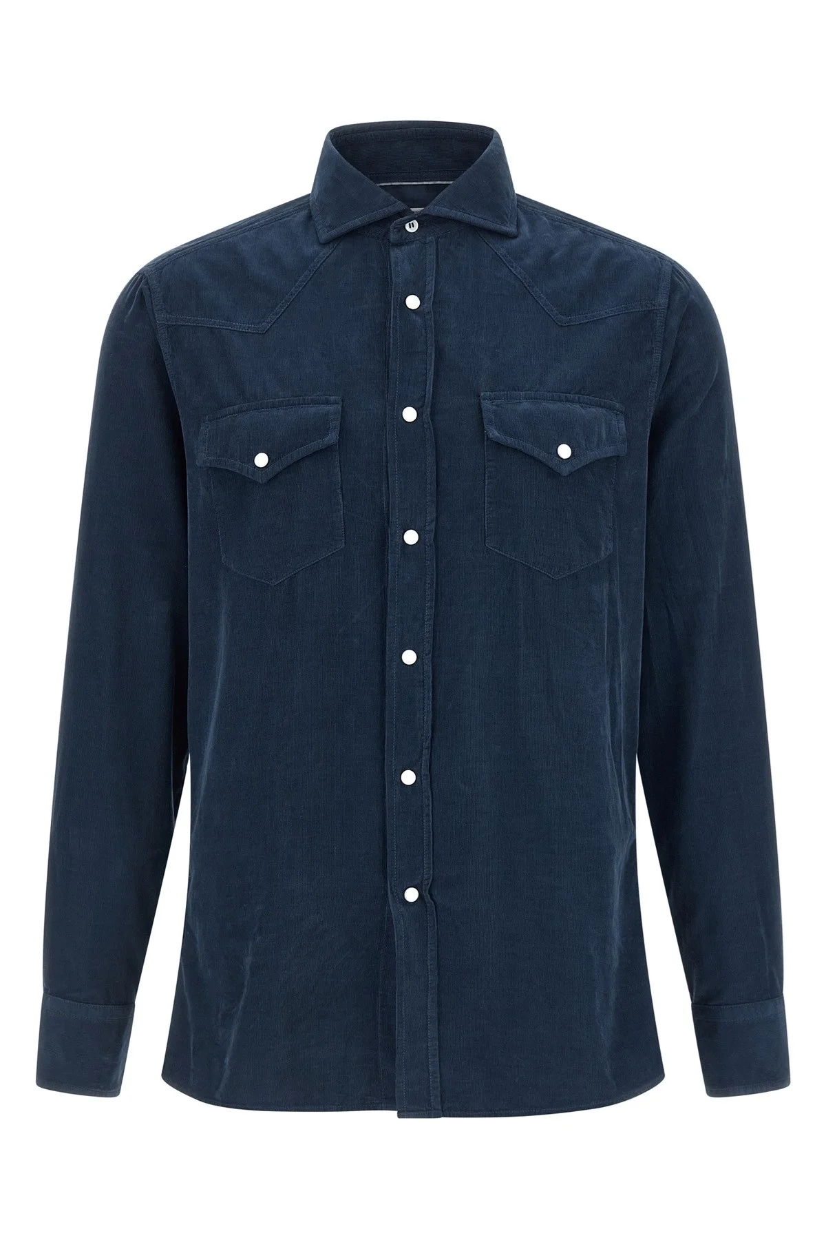 cod. ML6884008C7057 Corduroy shirt in ribbed cotton with mother-of-pearl snap button closure on the front, small pockets, long cuffed sleeves. Color: Blue Size & Fit: Easy fit Composition: 100% cotton Made in: Italy
