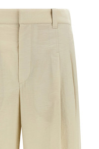cod. M0F79P9189C9593 Cotton blend pants, formal model, mid waist with double front pleats, front stretched pleat, zip and hook closure, pockets. Color: White Size & Fit: True to size fit Composition: 75% cotton, 25% polyamide Made in: Italy