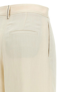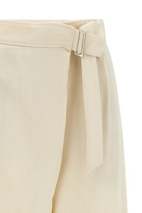 Viscose and linen fluid twill sartorial wrap trousers with monili