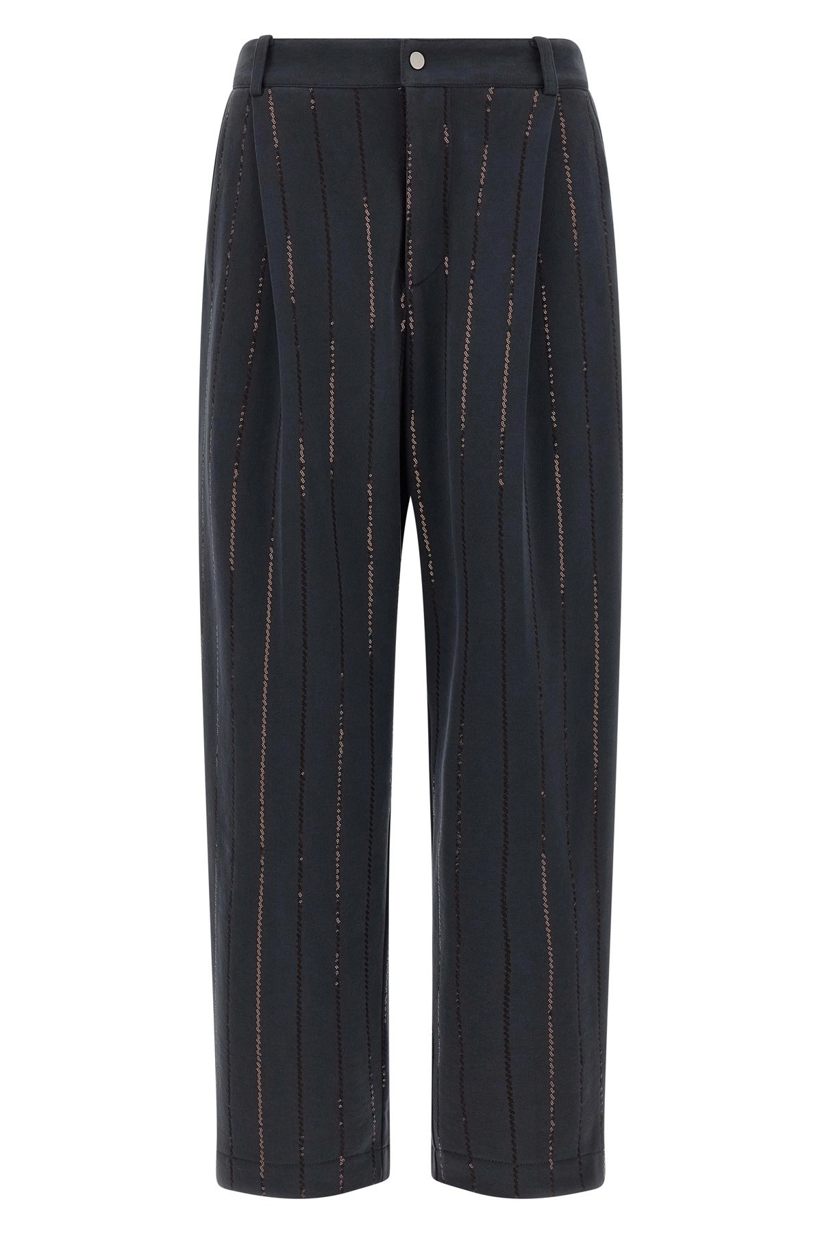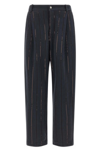 cod. MN05NSO899C7186 Smooth cotton fleece joggers with 'Dazzling Chalk Stripe Embroidery' sequin pinstripe pattern, elastic waistband, zip and front snap button closure, straight leg, pockets. Color: Gray Size & Fit: true to size fit Composition: 100% cotton Made in: Italy